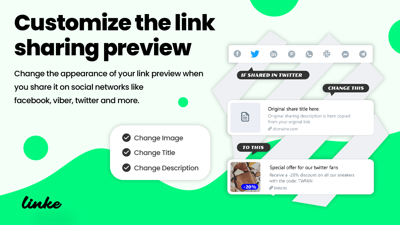 * Tùy chỉnh bản xem trước chia sẻ các liên kết của bạn, sử dụng bản xem trước khác nhau cho mỗi mạng xã hội.