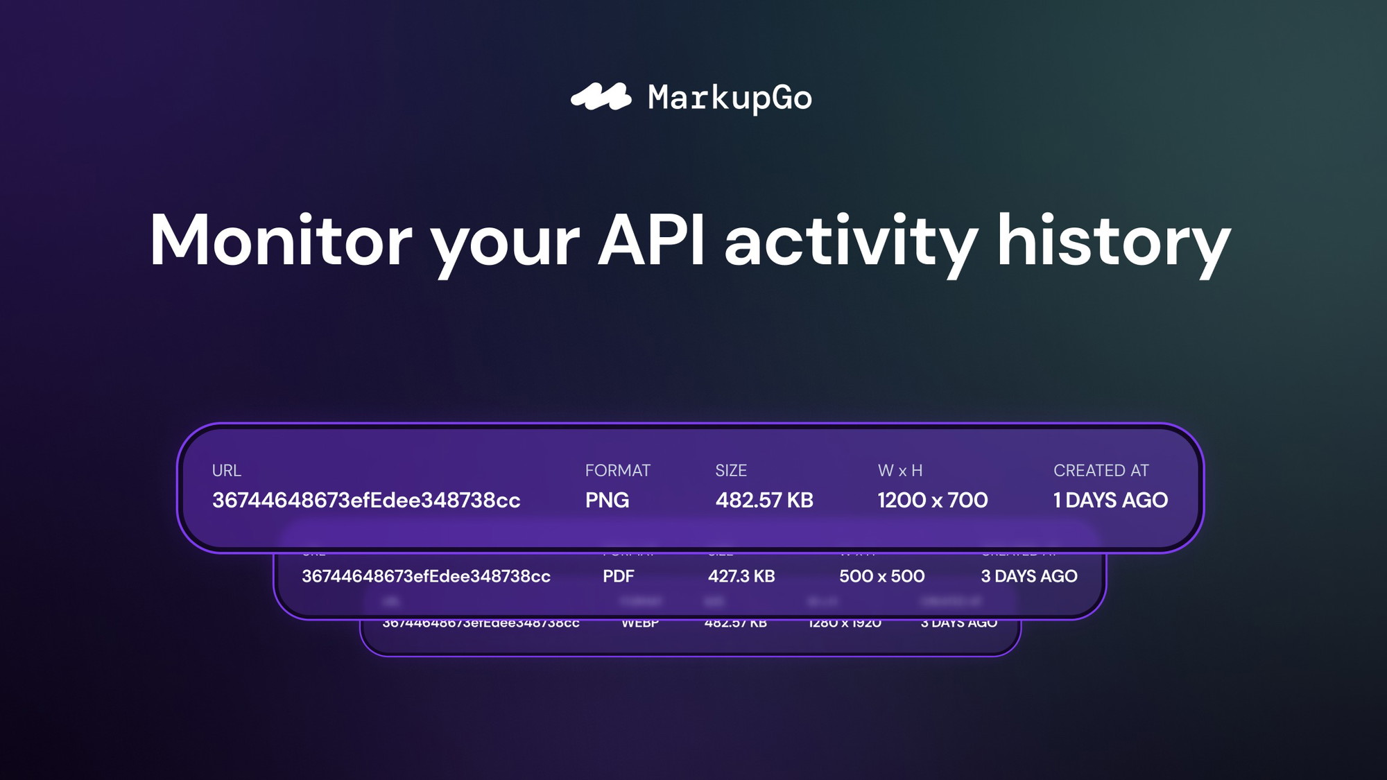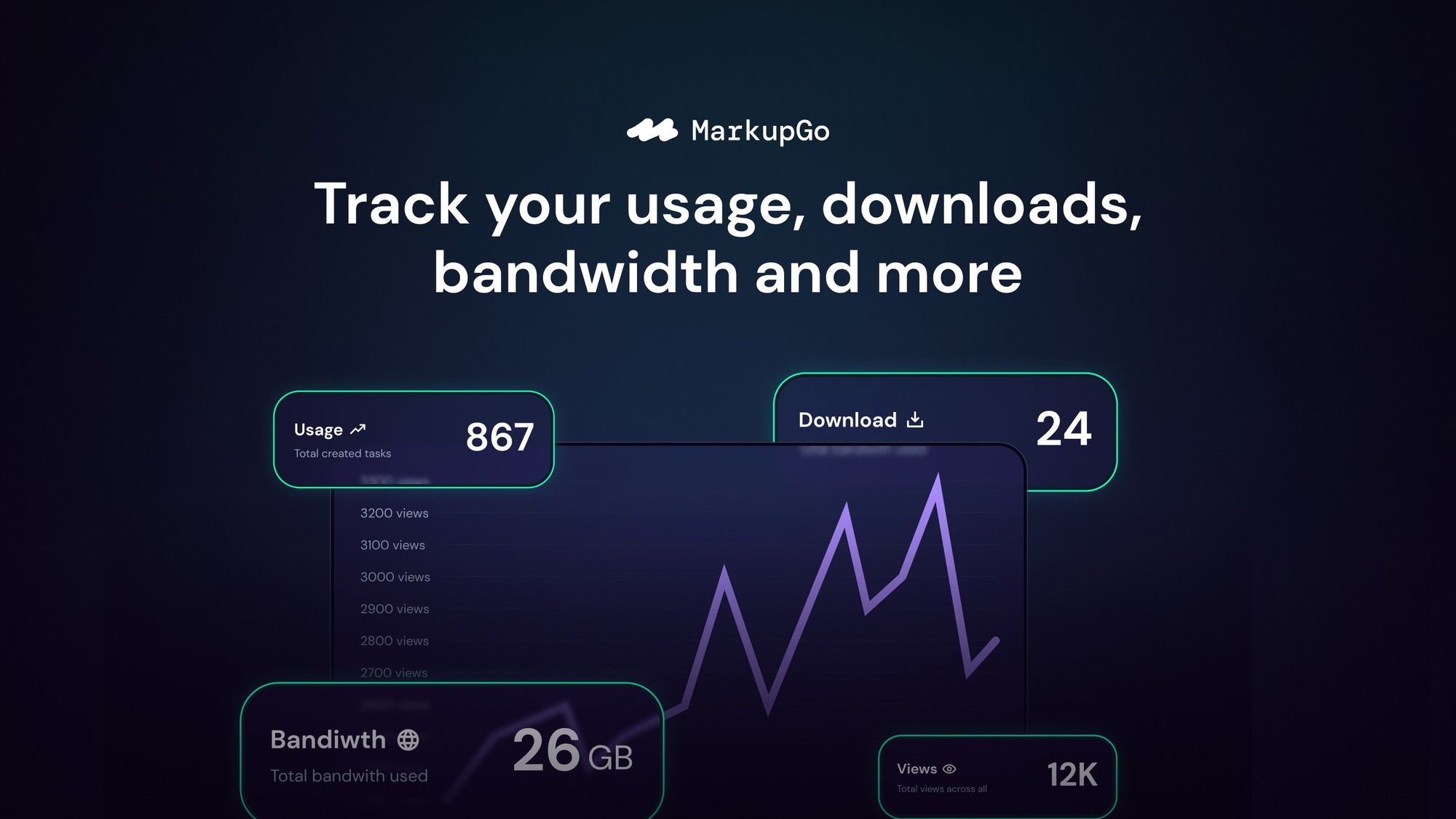 MarkupGo cung cấp theo dõi chi tiết các lượt tải xuống và băng thông của bạn, cung cấp thông tin chuyên sâu để giúp bạn quản lý tài khoản của mình hiệu quả hơn và tối ưu hóa việc sử dụng tài nguyên.