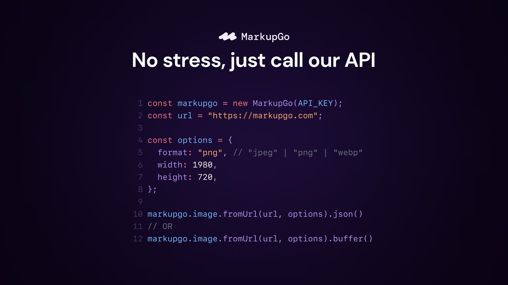 Làm quen với MarkupGo, giải pháp tối ưu giúp đơn giản hóa và tự động hóa việc tạo tài liệu và hình ảnh của bạn.
