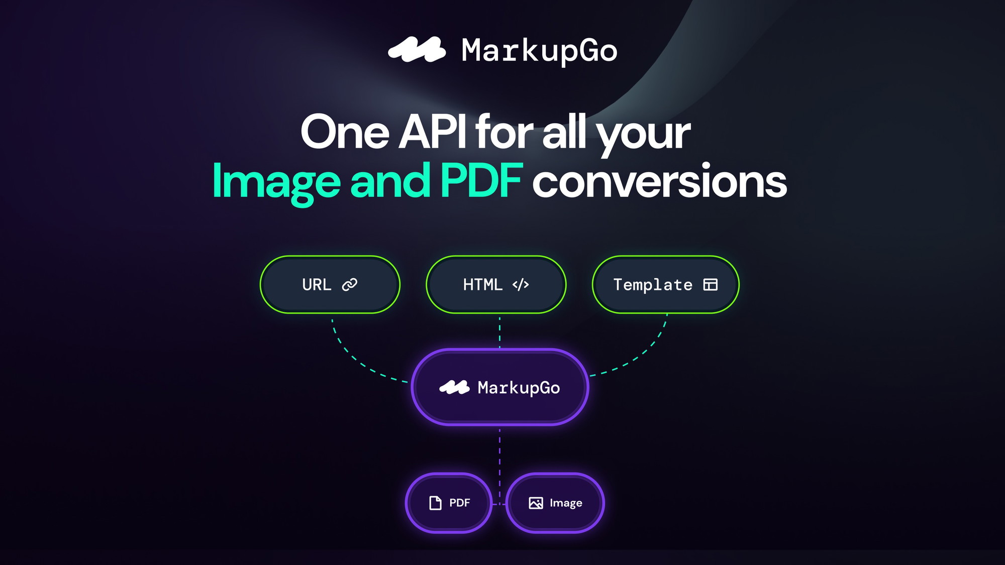 MarkupGo là nền tảng API tất cả trong một, tạo ra các tệp PDF và hình ảnh chất lượng cao từ các mẫu URL, HTML, CSS và JavaScript.