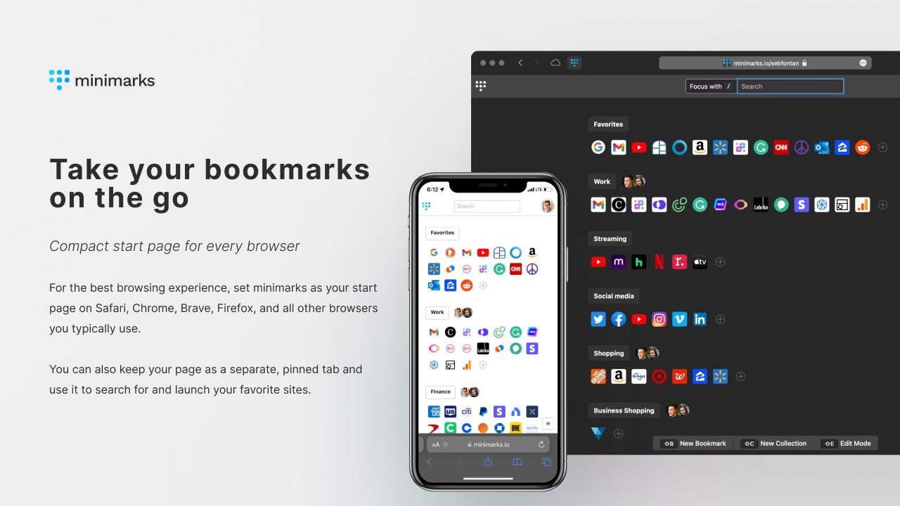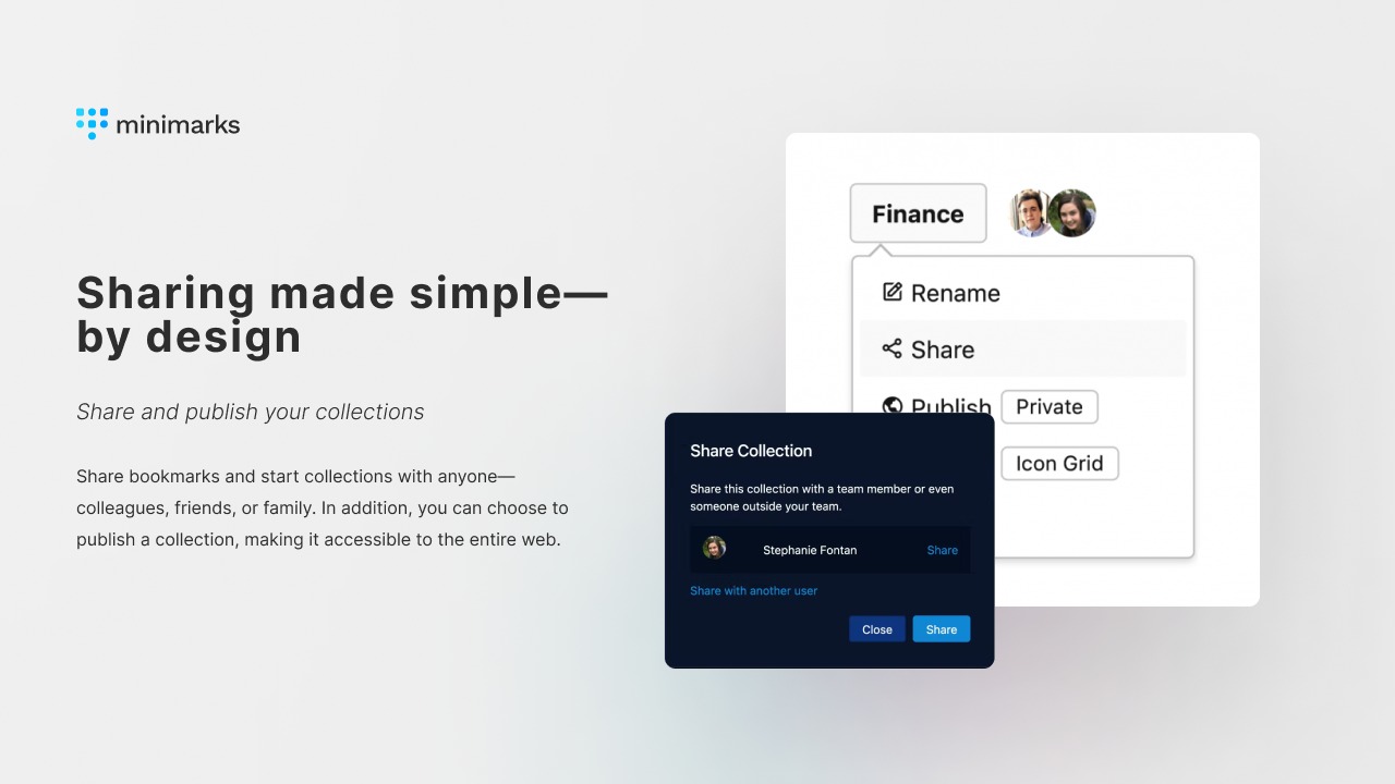 minimarks cho phép bạn xuất bản bộ sưu tập dấu trang của mình một cách dễ dàng.