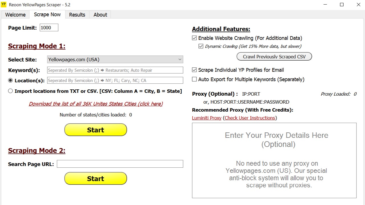 Bắt đầu thu thập hàng triệu khách hàng tiềm năngtừ YellowPages của các quốc gia khác nhau và xuất chúng dưới dạng tệp Excel.