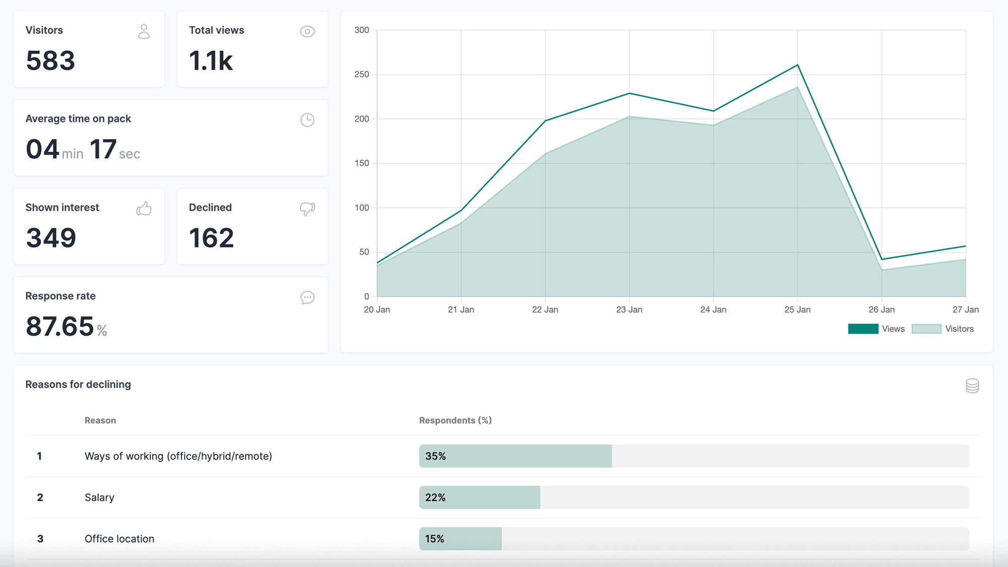 Với sự trợ giúp của công cụ phân tích tích hợp, bạn có cái nhìn toàn diện về hiệu suất của các gói thông tin ứng viên của mình.