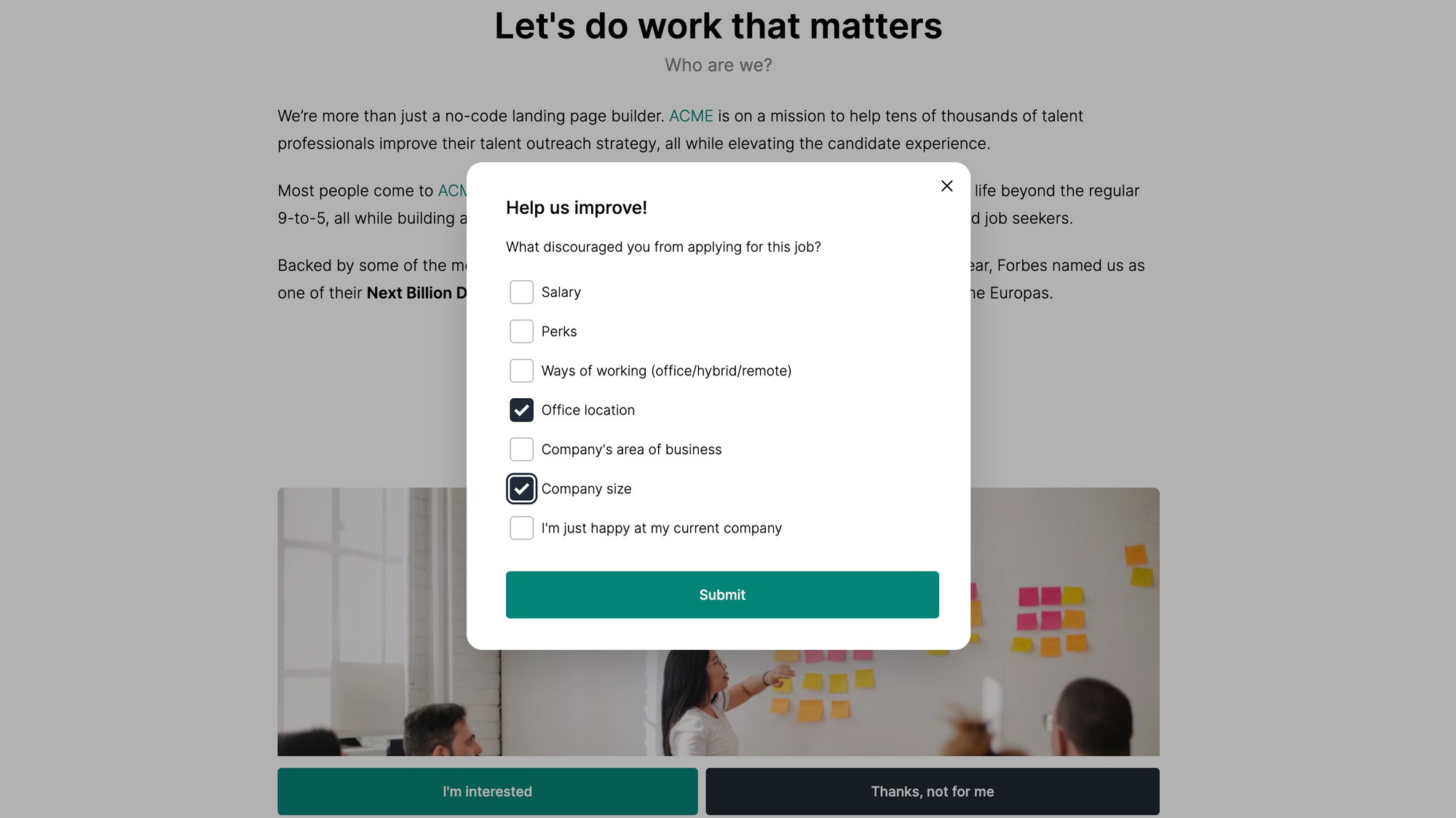 Thu thập phản hồi một cách dễ dàng, ngay cả từ những ứng viên không quan tâm đến cơ hội.