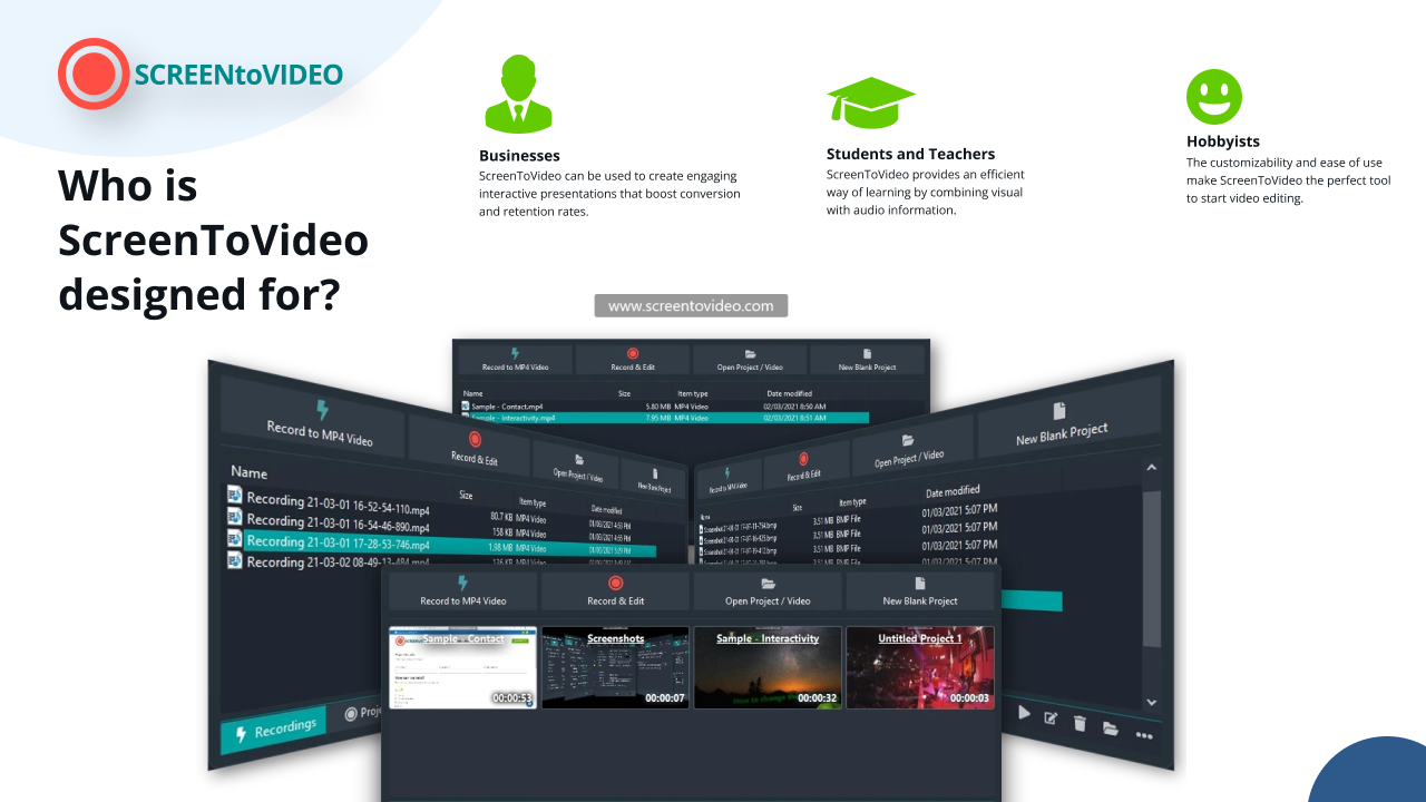 ScreenToVideo là hộp công cụ hoàn chỉnh dành cho bất kỳ người sáng tạo nội dung nào và nếu bạn bỏ lỡ một tính năng, chúng tôi luôn sẵn sàng triển khai tính năng đó cho bạn!