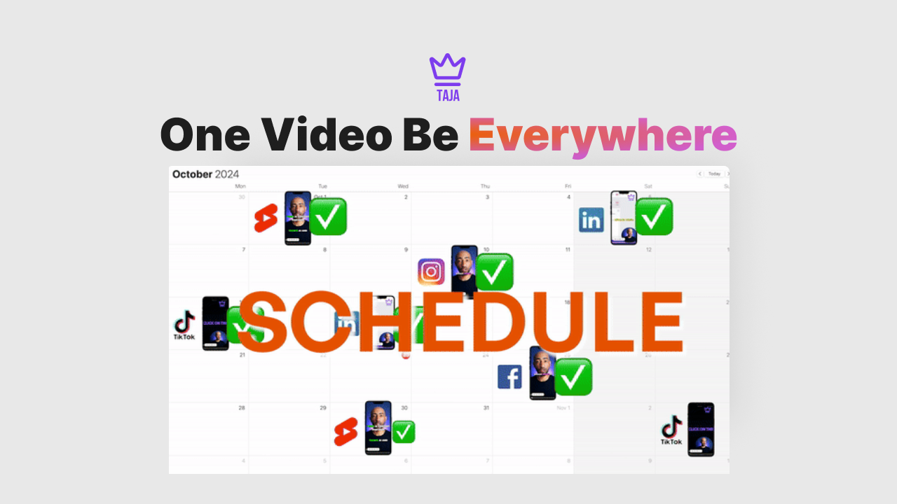 Nhưng điều gì sẽ xảy ra nếu một video có thể xuất hiện ở mọi nơi và được tối ưu hóa hoàn hảo? Hãy sử dụng Taja—công cụ có thể biến một video dài thành các clip và bài đăng ngắn dành riêng cho nền tảng một cách dễ dàng.