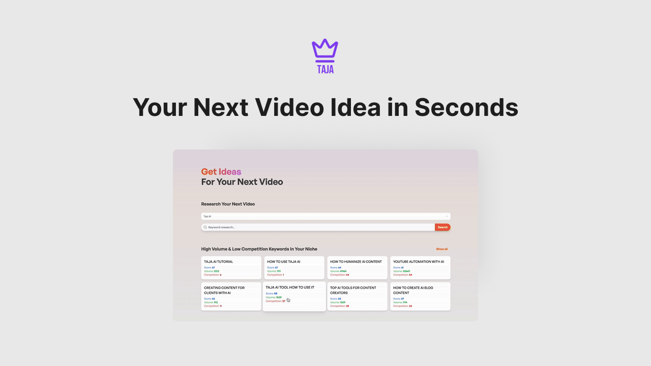 - Khám phá ý tưởng video mới nhờ nghiên cứu từ khóa được hỗ trợ bởi AI của Taja