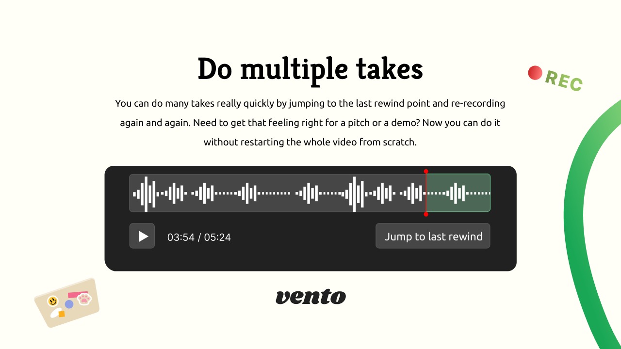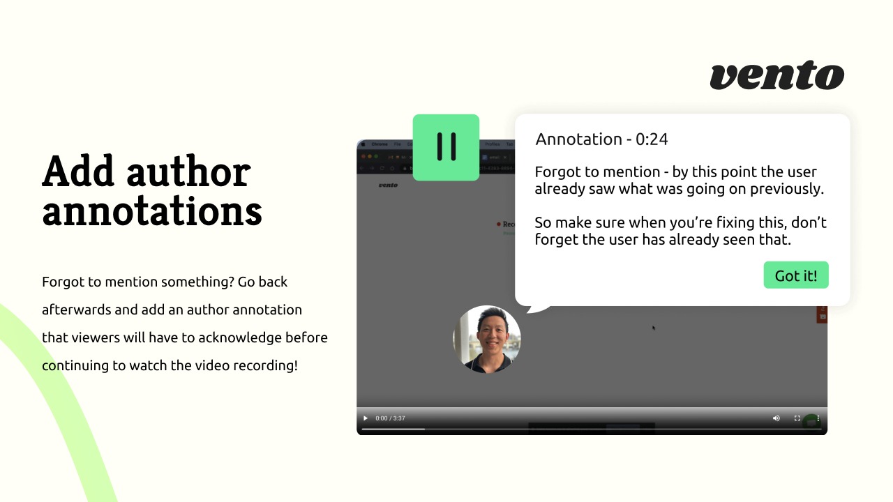 Với Vento, bạn chỉ có thể tạm dừng, tua lại vài giây và ghi lại bất kỳ lỗi nào.