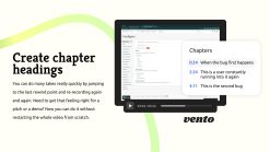 Vento hỗ trợ ghi lại màn hình, âm thanh bên trong/bên ngoài và webcam với bản chép lời miễn phí.