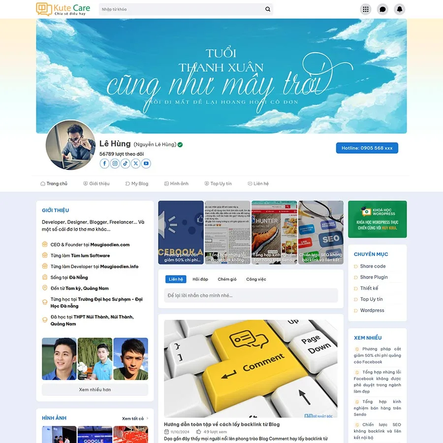 🌟 Theme WordPress blog cá nhân giống Facebook giá rẻ – Giải pháp hoàn hảo cho trang web blog cá nhân giống Facebook